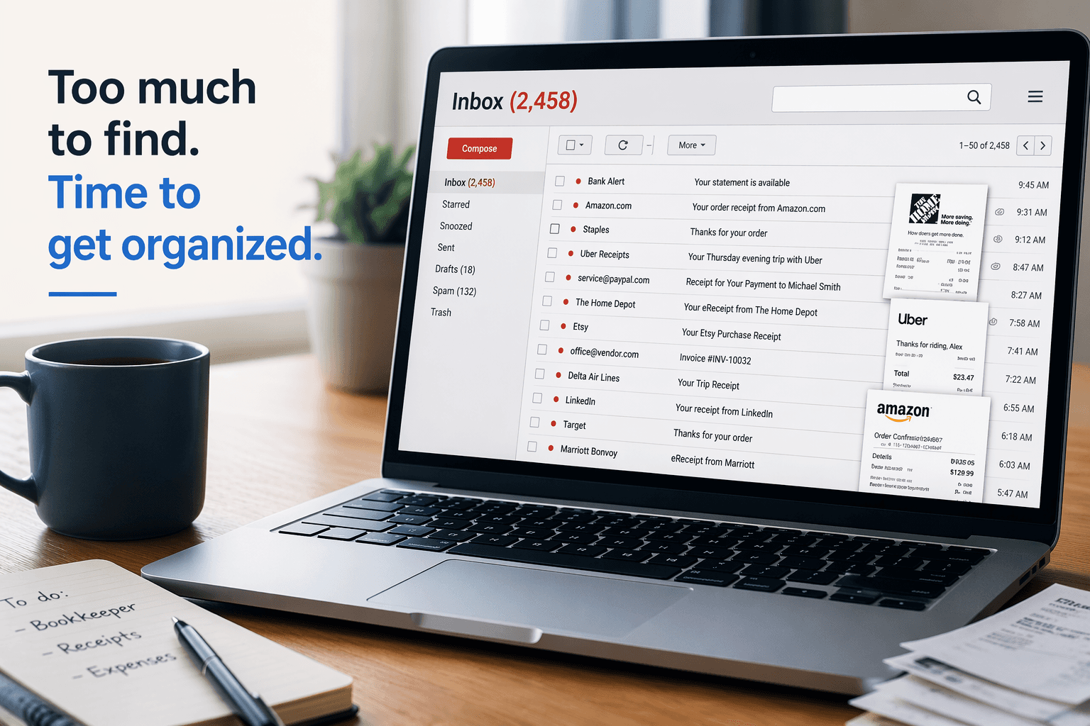 - Capture receipts as they come in