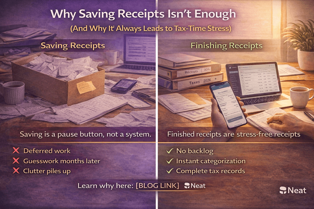Saving receipts feels responsible. You tuck them into a folder. You email them to yourself. You drop them into a drive called “Taxes.” And yet… nothing ever feels finished. That’s because saving receipts isn’t a system. It’s a pause button. For small business owners, freelancers, and contractors, this pause builds quietly over time — until […]