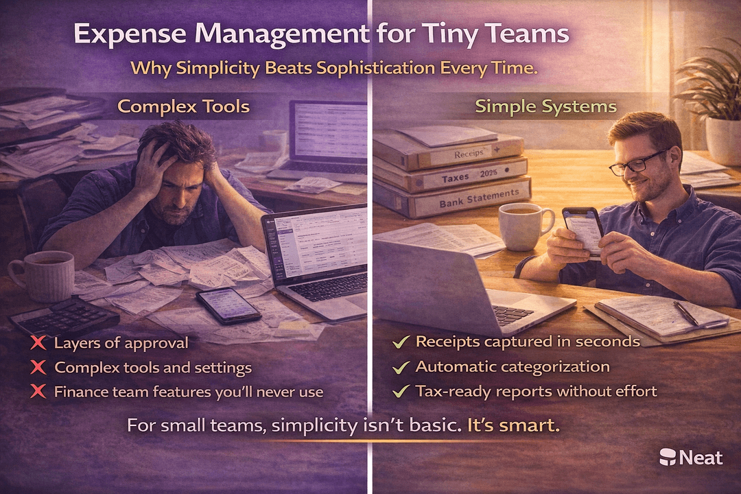 Expense Management for Tiny Teams: Why Simplicity Beats Sophistication Every Time If your business has two people, three people, maybe five on a good day, there’s a good chance you’ve been sold the wrong idea of what “good expense management” looks like. You’ve been told it’s about dashboards. About layers of approvals. About advanced workflows, […]